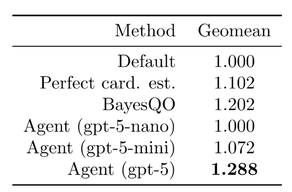 Since relational databases were first introduced, automated query optimizers and practitioners have struggled to find good join orderings for SQL queries. In the earlier blog we explored the ability of LLMs to optimize the join order of SQL queries, which can be thought of as a form of ADRS optimization against the SQL DSL instead of a full programmatic language. In that blog we showed that LLMs had promising performance for join ordering compared to state of the art approaches.